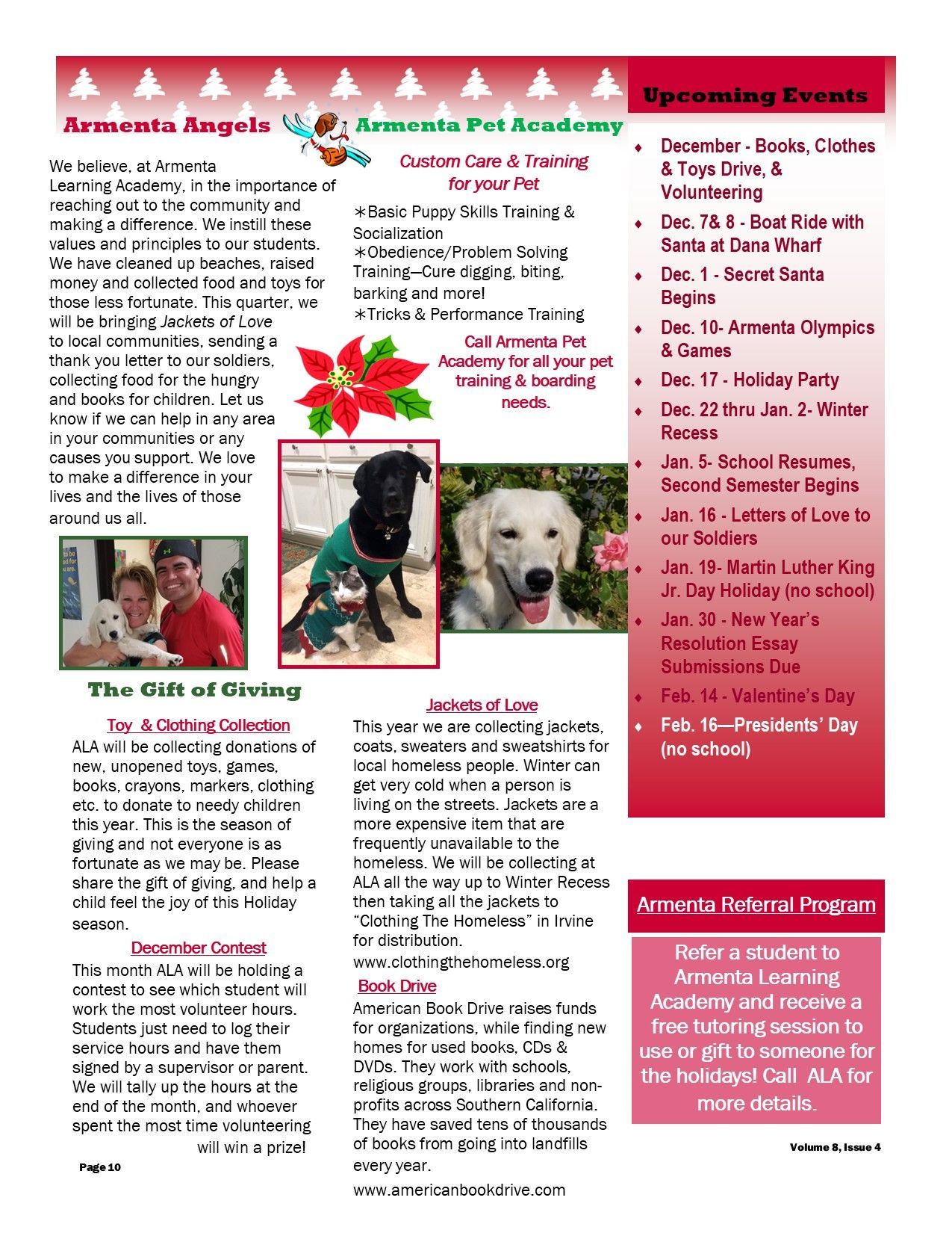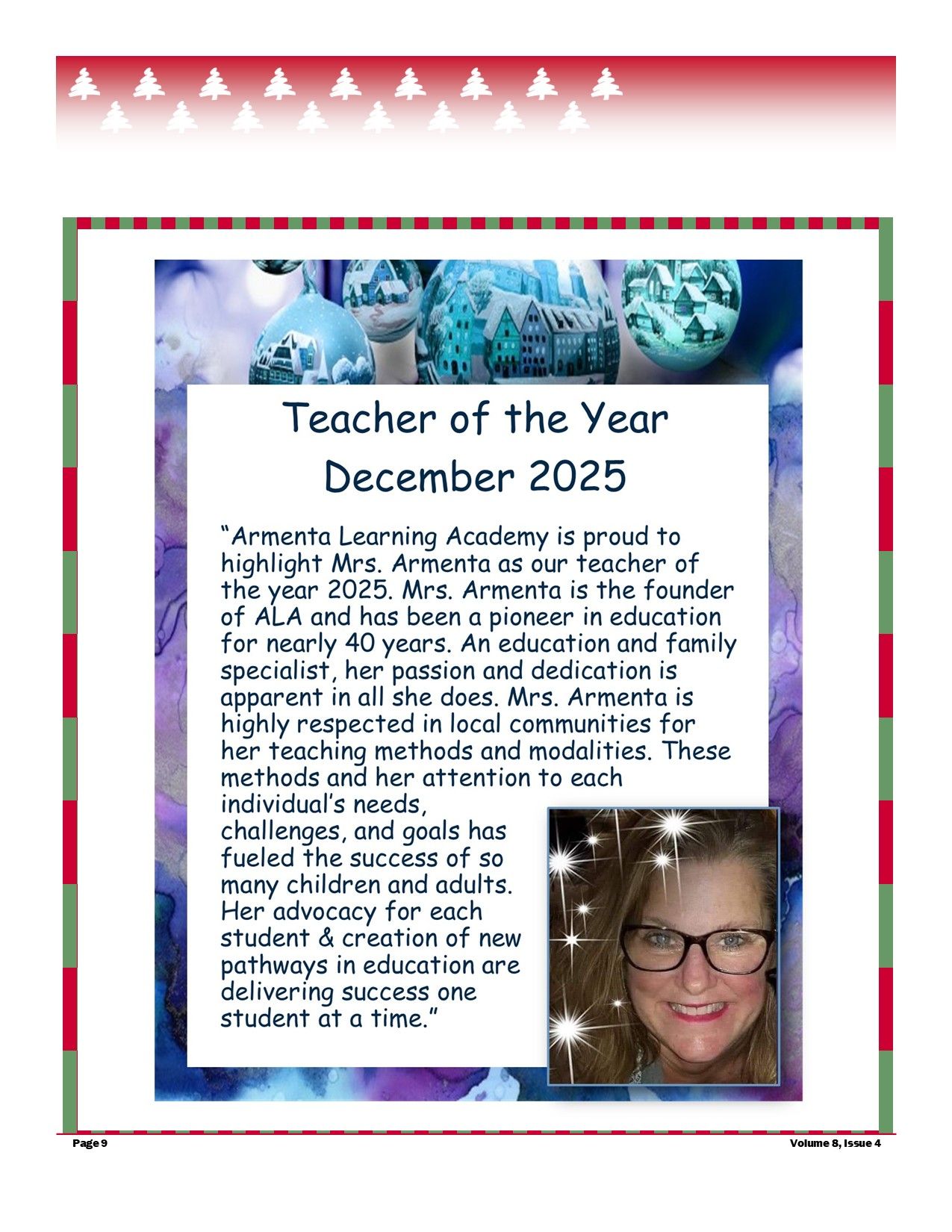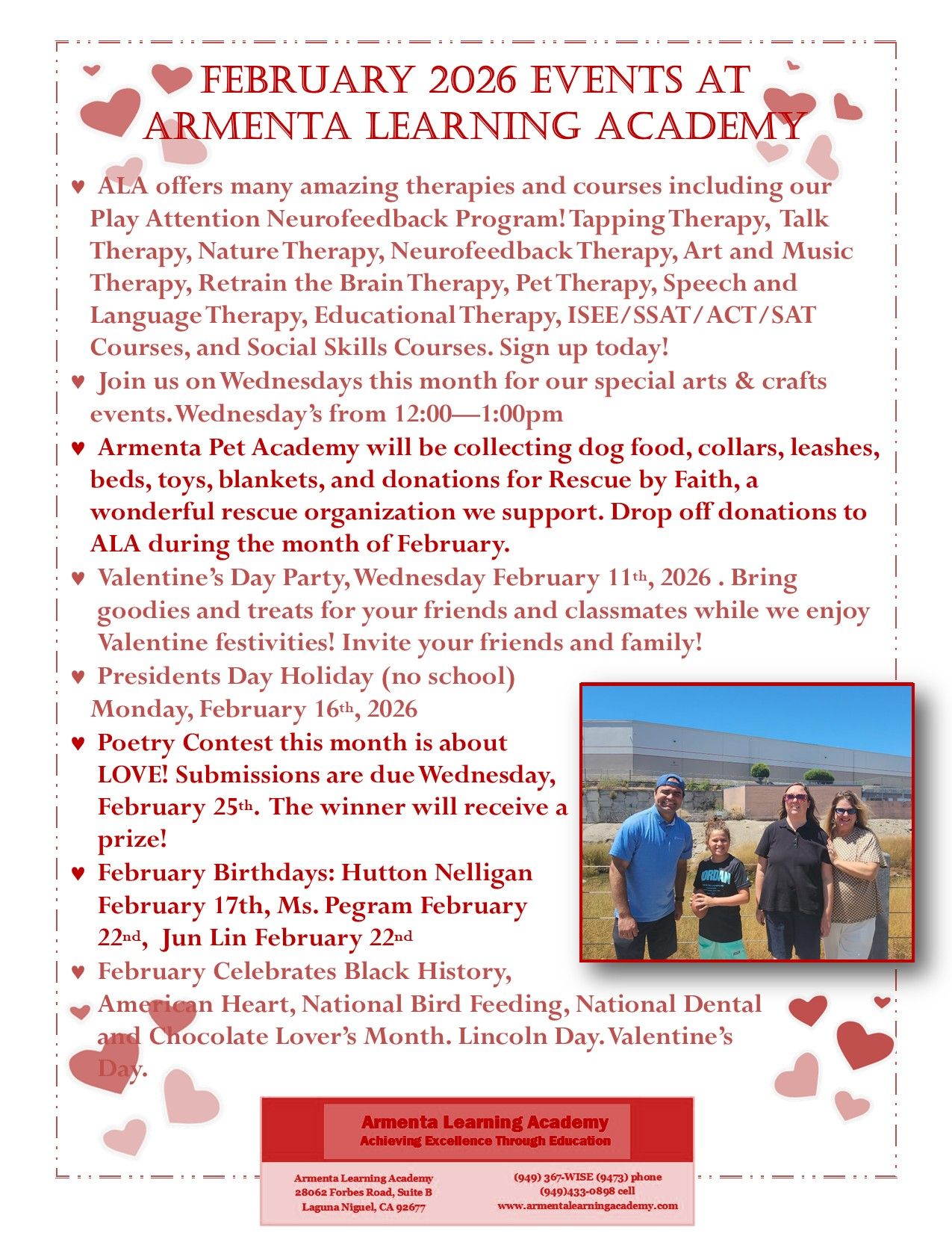 ARMENTA LEARNING ACADEMY'S CALENDAR & UPCOMING EVENTS